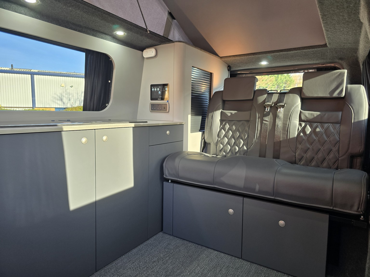 Customise this van to your liking with a host of external styling options, 20" alloy wheels, Sports Styling Body-Kits, Nappa leather upholstery, and interchangeable cabinetry with a host of colourful options.