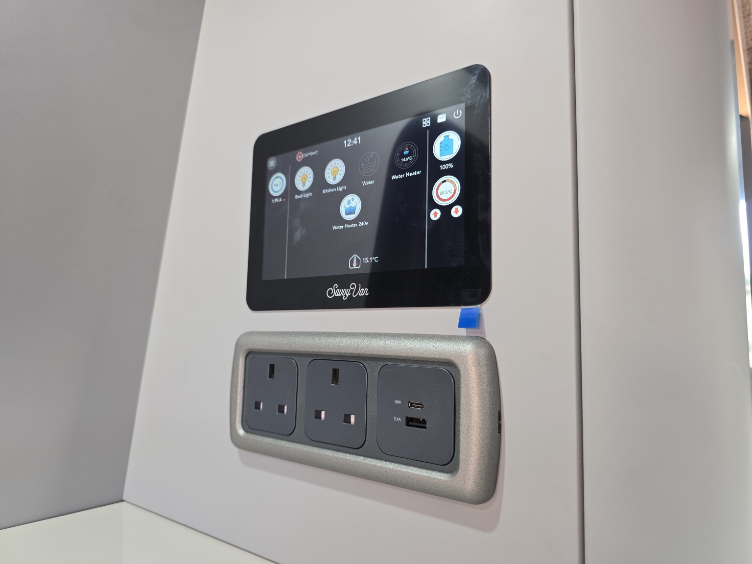 BESPOKE TOUCHSCREEN CONTROL PANEL – Lighting, water pump, water heater, LPG (gas) supply, and central heating are all controlled from this one central location.
